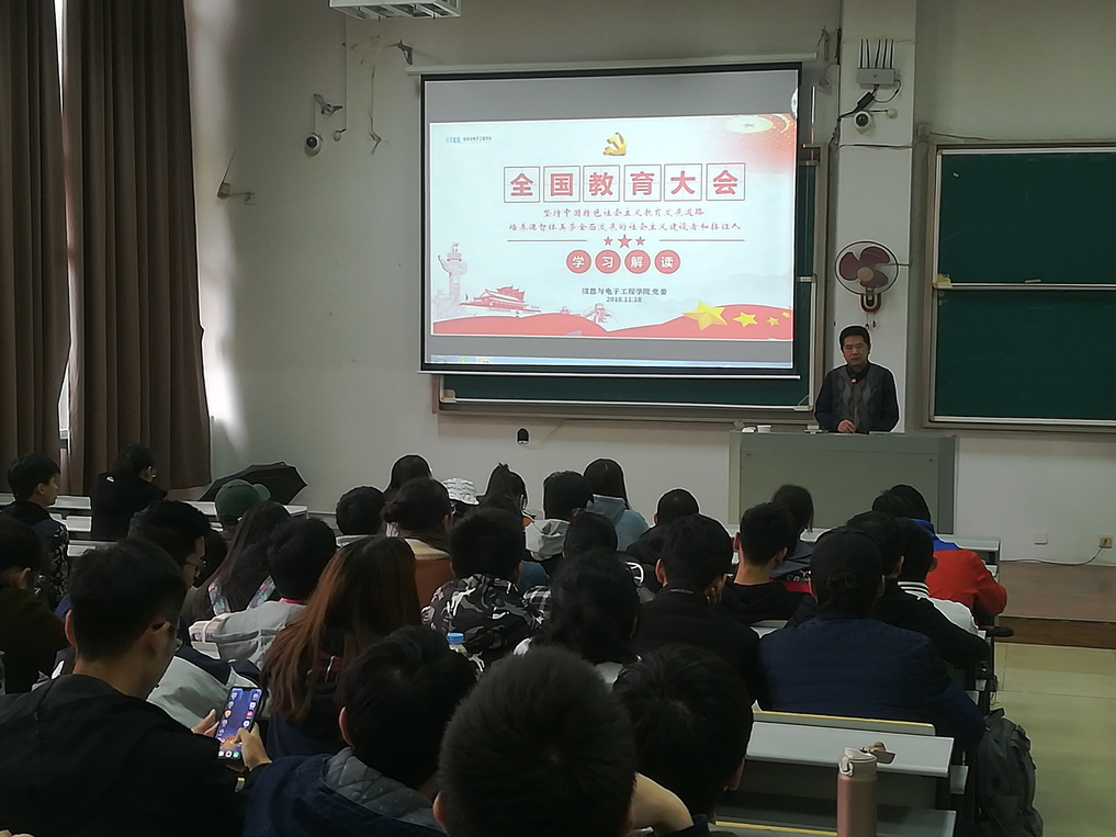 2018年11月15日下午13点30分,信息与电子工程学院第三次党课在A3—125拉开帷幕,本次党课由学院党委书记傅晓炜老师主讲。