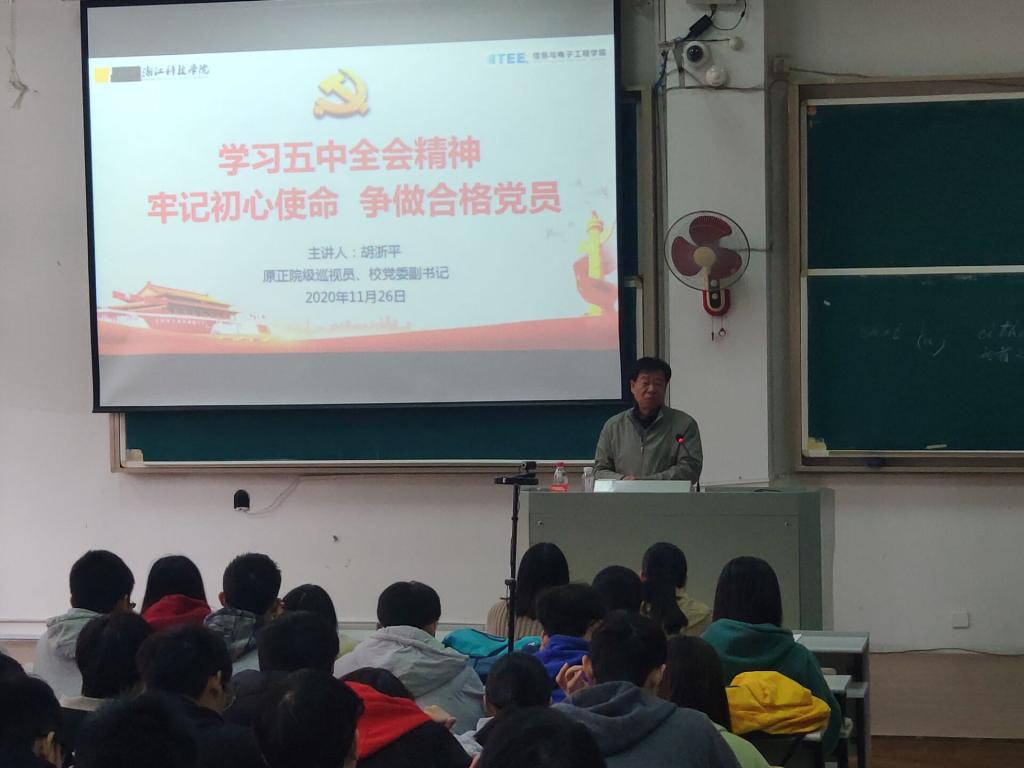 本次活动邀请到了无料AV 关工委常务副主任,原党委副书记胡浙平老师为我们深入讲解十九届五中全会精神,胡书记首先向我们描述了我国现阶段取得的一系列成果,其中包括粮食产量连续五年破万亿以上,5575万农村贫困人口脱贫等等,同时还深入分析了我国目前面临的国际局势,以及在新冠疫情下我国所展现的强大力量。最后,胡书记还从四个方面分析青年大学生如何争取入党,做合格党员,坚定了同学们爱党爱国的理想信念。