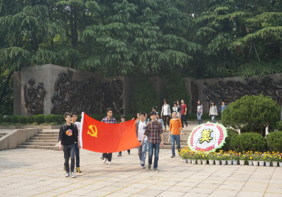 活动中,全体成员通过默哀致敬、党员代表向革命先烈敬献花圈、集体面向烈士墓碑三鞠躬、学生党员代表进行发言等形式,深切表达了对先辈们的缅怀之情以及崇高敬意。之后,在主持人的带领下全体成员在庄严的烈士纪念碑前致入党宣誓词。最后,全体党员绕烈士墓碑一周结束了此次的祭奠仪式。探寻着烈士先辈的足迹,我们还参观了革命烈士纪念馆内珍贵的图片资料、生平简介、烈士遗物,详细了解了烈士的真实经历。