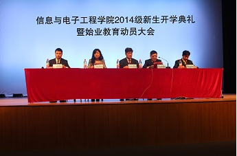 典礼伊始,岑岗院长发表了热情洋溢的讲话。首先他对新同学的到来表示热烈的欢迎,也很高兴众多新鲜血液加入信息与电子工程学院这个温暖的大家庭。随后,他回忆起36年前自己作为一名新生跨入大学的情景,从自身的经历帮助同学们解读了如何读大学及应该成为什么样的人。最后,他对同学们提出了希望:希望大家能树立远大的理想、立志成才;希望大家努力学习,培养创新能力;希望大家加强自身修养,使自己成为一个高尚的人。