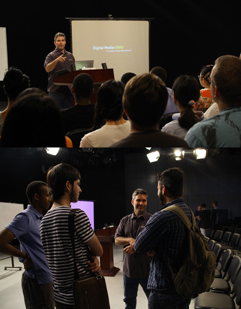 5月14日周四13:30,以“数字媒体产业发展与人才需求”为主题的报告演讲在实验中心524举办。本次论坛由犹他谷州立大学教授Rodayne Esmay主持演讲。Rodayne Esmay拥有美国犹他州杨百翰大学文学学士学位和纽约锡拉丘兹大学美术硕士学位。Rodayne Esmay任教于犹他谷大学已有十年。他曾作为一个漫画家,设计师和艺术总监为飞利浦电子和艾伦通信工作。期间,Rodayne也为世界500强客户,包括丰田,福特,联合太平洋铁路公司,时代镜报和信诚证券工作。在教学育人的十年里,他曾执导过多个获奖项目。其中一个项目是3D动画电影“蜥蜴和天梯”,被美国电影艺术与科学学院2012年学生奥斯卡金像奖提名。他还带领另一个学生团队成功地创建和发布了UVU的第一个视频游戏“DubWar”。