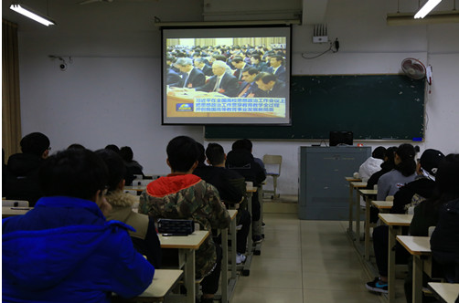 分会组织学院共青团员代表在A2-118共同学习了习近平总书记在全国高校思想政治工作会议上的重要讲话。