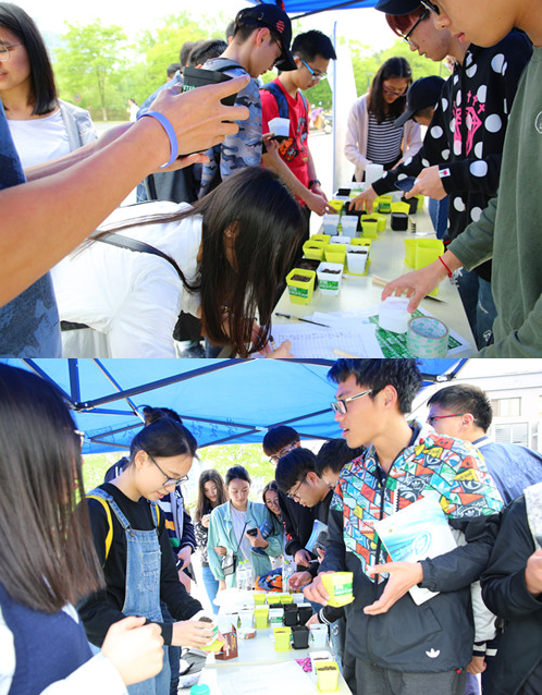 活动当天,同学们经过绿植领养的摊位时,马上兴致勃勃地来领取种子。面对着含羞草、向日葵、文竹等高颜值植物介绍时,同学们驻足摊位,一一学习,眼花缭乱。同时工作人员还邀请了一些有意愿的同学参加后续的绿植小能手评比活动,在场同学踊跃报名。