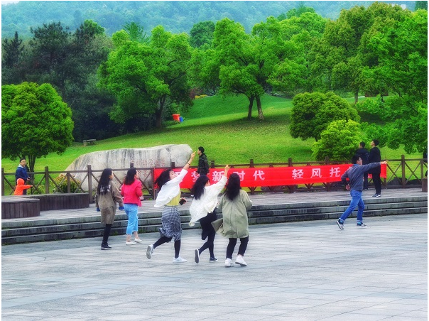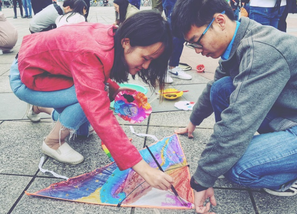 绘梦纸鸢,借清风让其翱翔云天。放飞环节,同学们放飞天性,自由奔跑将载梦的纸鸢送入空中,后望天入静,随漂移而前后奔走。沐浴着清新的空气,迎着徐徐吹来的清风,享受当下无限春光。风筝节始于唐朝,近代越来越多的人投入到这项运动中来,后随着国际的发展,风筝流传到世界各地,恰如一位外国风筝专家所说的:“中国人民在两千年前就发明了风筝,这是举世公认的。风筝也成为了中国的一张名片,放飞环节中一位外国留学生小哥让我帮他拍照表示他要向他的朋友们介绍中国,让他们也来到中国,此时我由衷的为自己的国家感到骄傲。