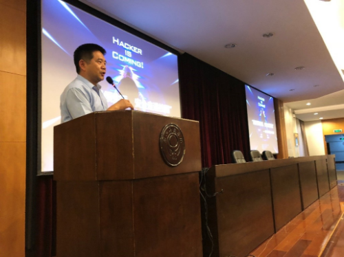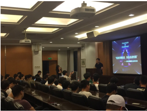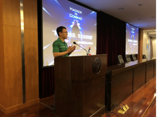 的党委书记傅晓炜老师为此次讲座致开场词,傅老师热情地欢迎大家的到场,他表示,“无形”的网络中存在诸多威胁,让人感觉“不寒而栗”,但庆幸的是,我们拥有大量“有形”的力量在维护和保卫着网络的安全,他号召同学们树立起安全的意识,以专业的技术、饱满的自信和决心,学好网络安全的知识,成为无形世界的守卫者。