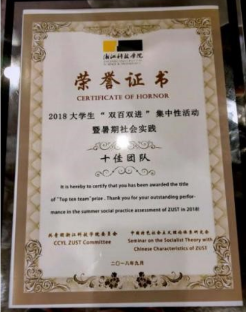 2018大学生“双百双进”集中性活动暨暑期社会实践十佳团队。