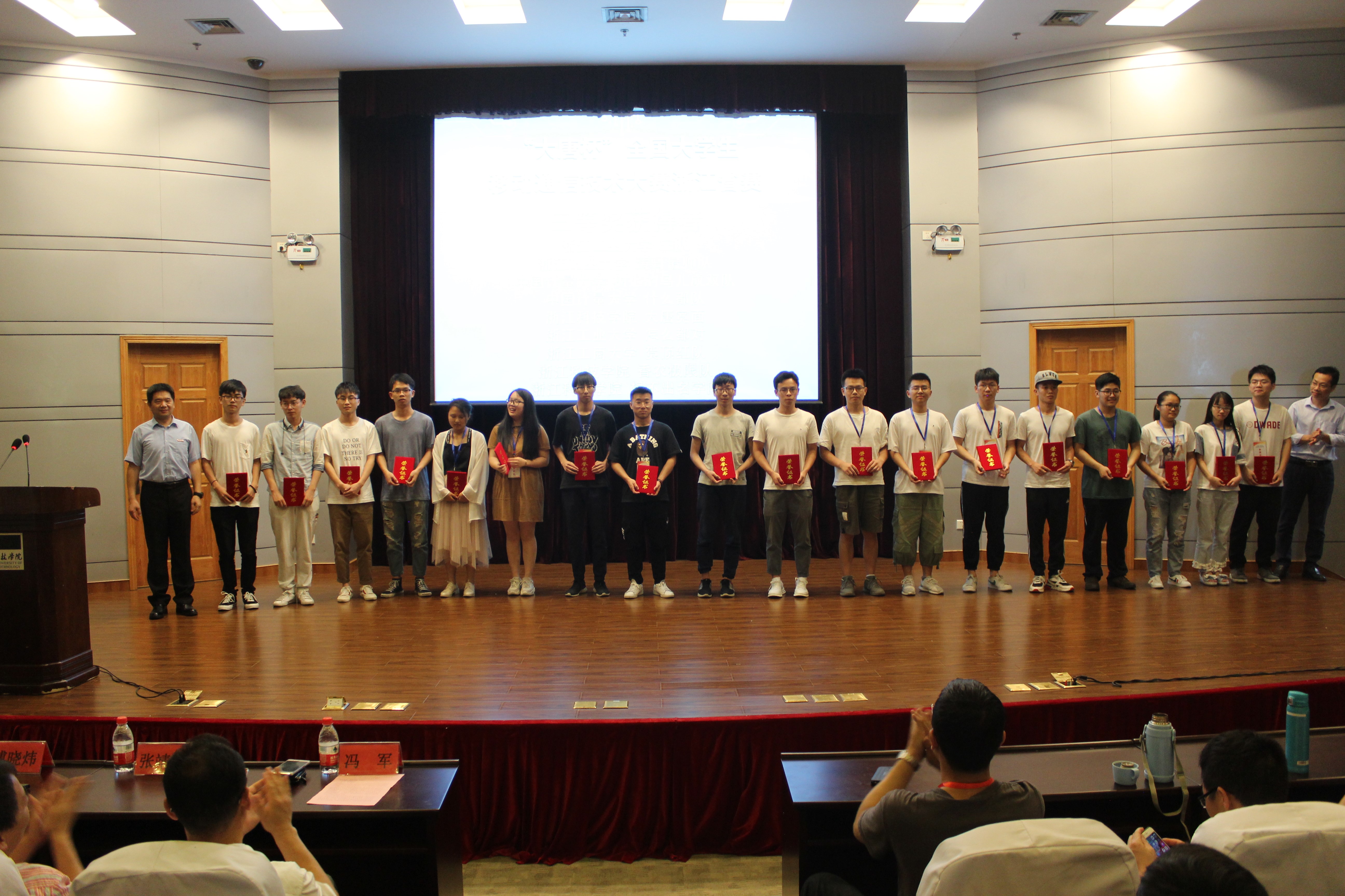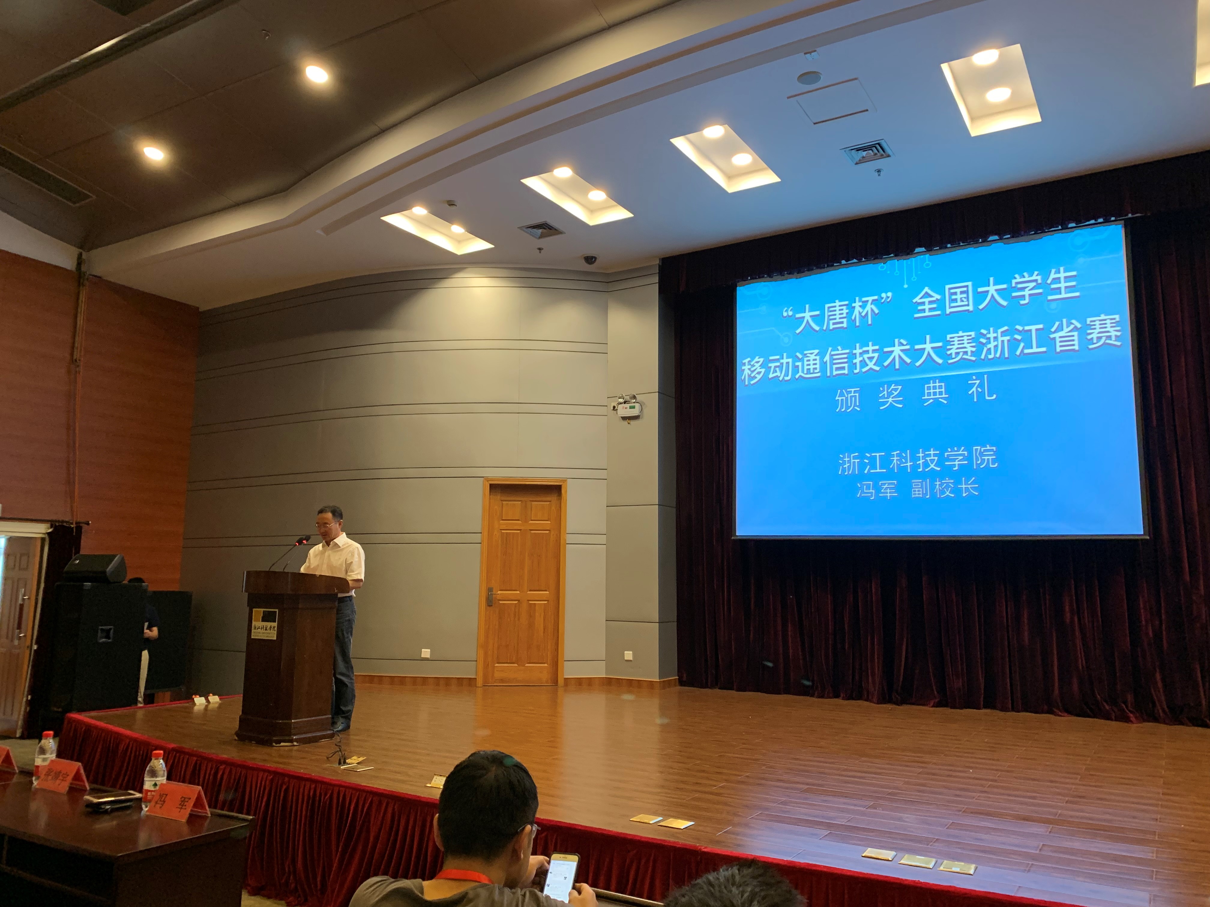 副校长冯军教授出席颁奖仪式并致辞。浙江赛区负责人、大唐网络教育事业部张靖宇副总经理做赛事总结。出席颁奖活动的嘉宾还有无料AV