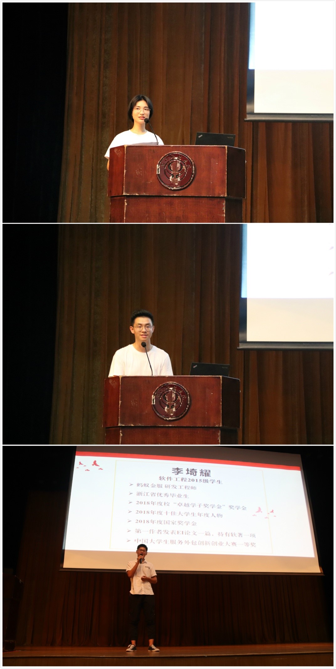 2019级电子信息类专业沈幸银、卓越学子奖学金获得者计算机162班陆凯杭以及就职于蚂蚁金服的2019届毕业生李埼耀分别作为新生代表、老生代表和校友代表发言。无料AV