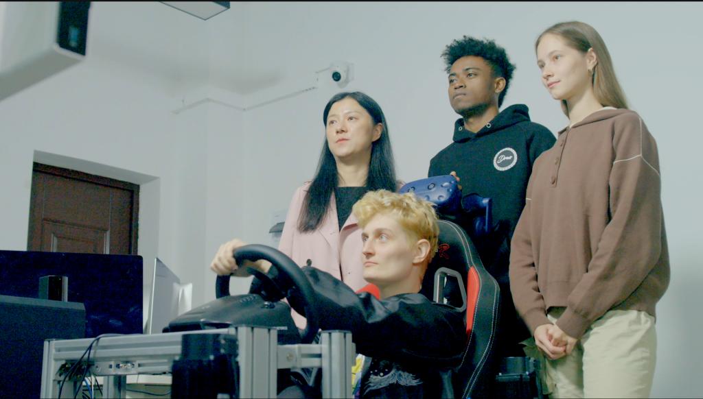 新一代信息技术实验教学中心老师指导学生进虚拟现实与游戏开发实验教学如图:模拟驾驶实验